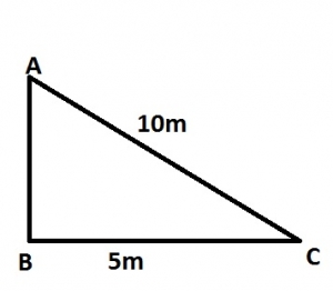 In the diagram, AB is a vertical pole and BC is horizontal. If |AC| = 10m and |BC| = 5m, calculate the angle of depression of C from A