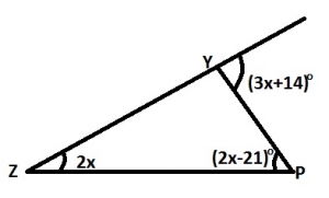 ∴2xo + (2x-21)o + 180o - (3x+14)o = 180