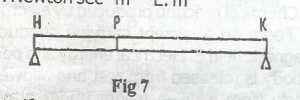 A uniform bean HK of length 10m and weighing 200N is supported at both ends as shown above. A man weighing 1000N stands at a point P on the beam. If the reactions at point H an K respectively are 800N and 400N, Then the distance HP is