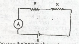 In the circuit diagram above, the ammeter reads a current of 3A when R is 5 ohms and 6A when R is 6 ohms,the value of the unknown resistance X is