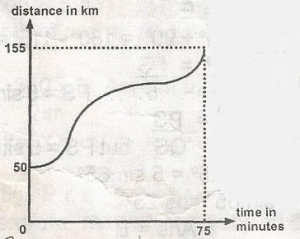 The diagram is the distance time graph of a vehicle. Find its average speed in kilometers per hour during the journey