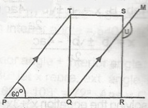 In the figure, QRST is a rectangle; PT// QM, angle P = 60o. Find angle MUR