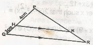 In \(\bigtriangleup\)PHK and \(\bigtriangleup\)PAR = \(\frac{PH}{PQ} = \frac{PK}{PR}\)