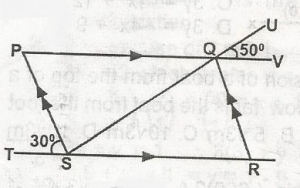 SQR + RQV + VQU = 18o angle on a straight line SP is parallel to QR and PV is parallel to TR