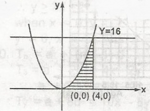 A = \(\int^{x = 4}_{x = 0}\) ydx = \(\int^{4}_{0}\) x2dx = [\(\frac{x^3}{3} + c]^{4}_{0}\)