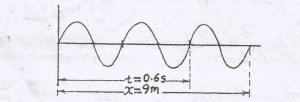 The diagram given illustrates a wave form. Determine the speed of the wave