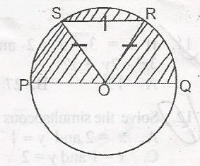 In the diagram, O is the centre of the circle and PQ is a diameter. Triangle RSO is an equilateral triangle of side 4cm. Find the area of the shaded region