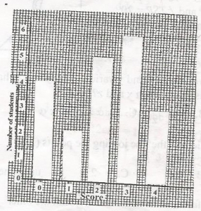 The bar chart shows the scores of some students in a test. If one students is selected at random, find the probability that he/she scored at most 2 marks