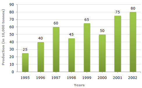 Average production (in 10000 tonnes) of 1996 and 1997 (40 + 60)/2 = 50