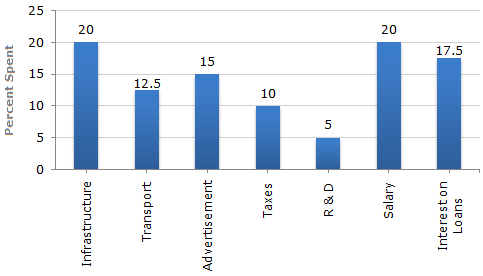 The bar graph given below shows the percentage distribution of the total expenditures of a company under various expense heads during 2003.