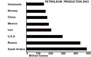 If the total production of petroleum is estimated to be 201 million tonnes, what is the approximate percentage of the production by the USA?