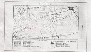 The bearing of the end of the secondary road at Ned from the road junction at Gag is approximately