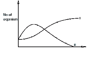 The above diagram represents a competitive interaction between organism in communities I and II. Which of the following statements is CORRECT?