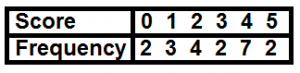 There are 20 students. Hence, the median is found by the average of the 10th and 11th score.