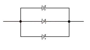 Three cells each of e.m.f 1.5 V and internal resistance 2.5Ω are connected as shown in the diagram above. Find the net e.m.f and the internal resistance