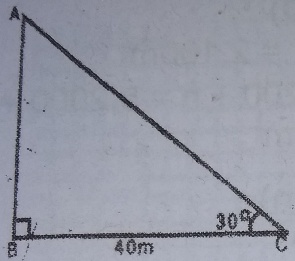 \(x = 40 \tan 30 = \frac{40}{\sqrt{3}}\)