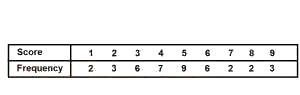 | f | 2 | 3 | 6 | 7 | 9 | 6 | 2 | 2 | 3 | 40 |